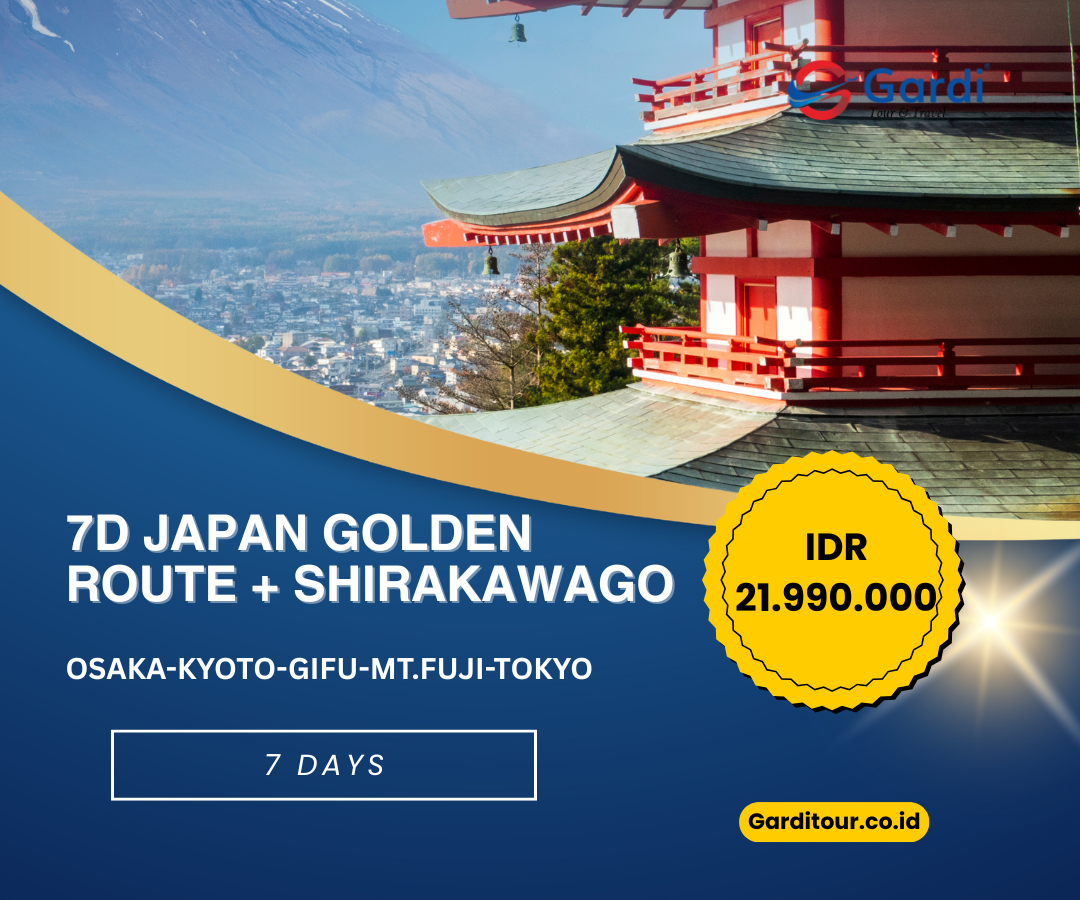 Nikmati keindahan terbaik Jepang melalui rute klasik yang paling populer — Golden Route — dengan tambahan destinasi menawan Shirakawago, desa tradisional yang terdaftar sebagai Warisan Dunia UNESCO.