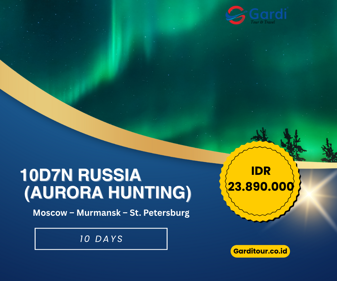 Dimulai dari ibu kota Moscow yang elegan, dilanjutkan ke kota Arktik Murmansk untuk menyaksikan Aurora Borealis (Northern Lights), lalu berakhir di St. Petersburg, kota paling romantis di Rusia dengan arsitektur Eropa klasiknya yang memukau.